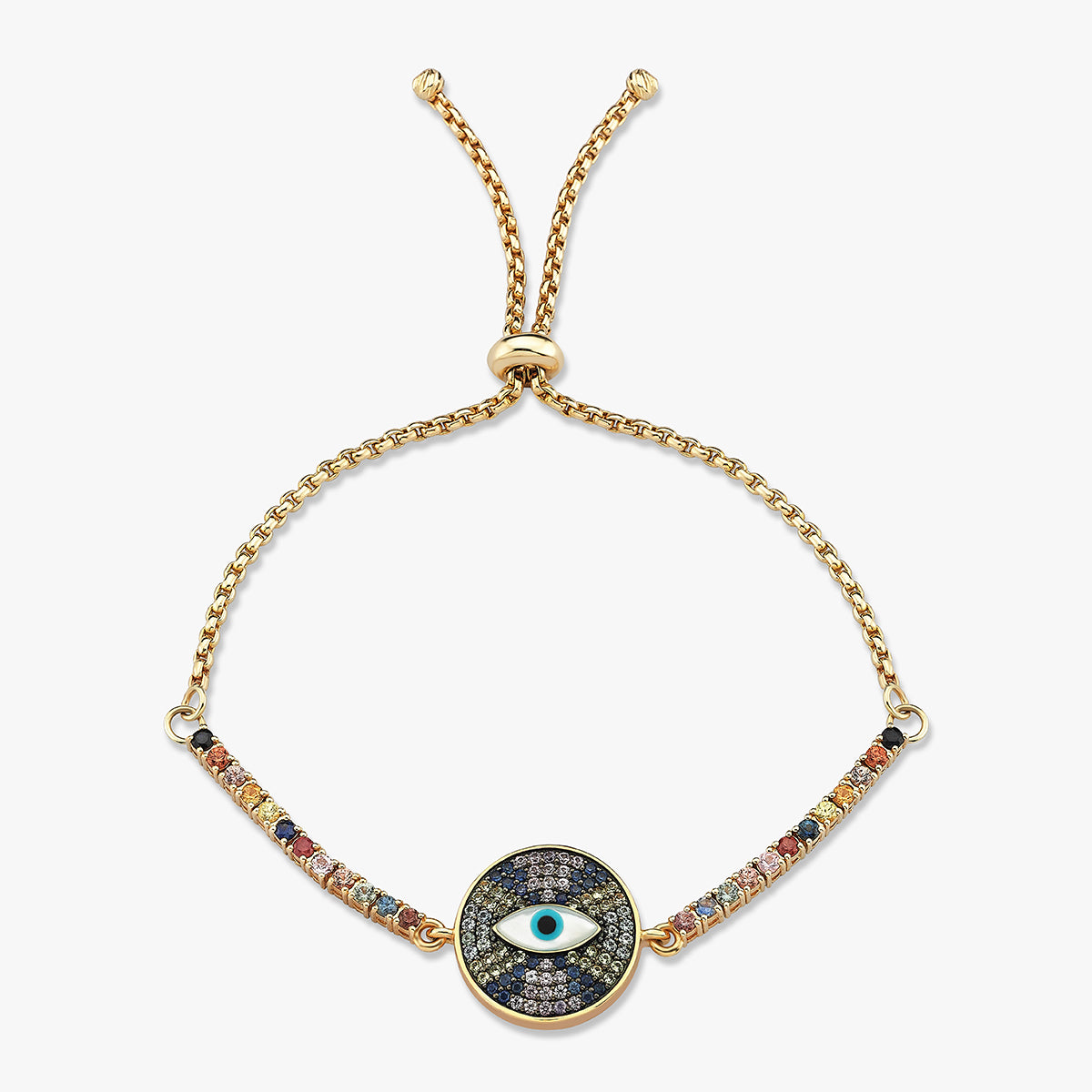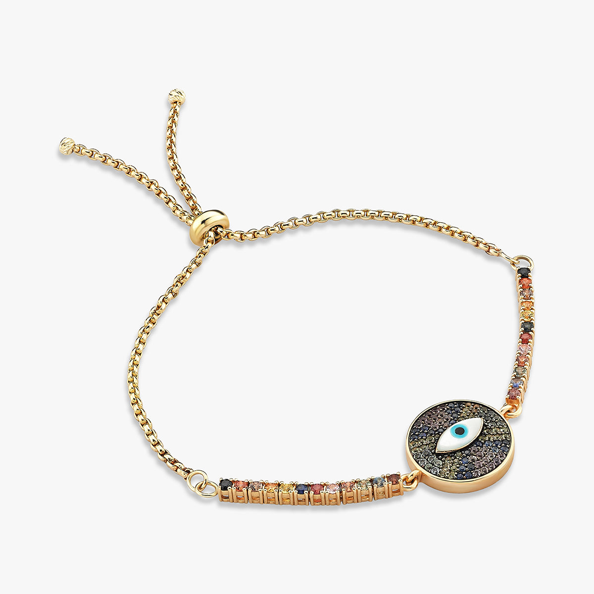 18 ayar sarı altından tasarlanan Evil Eye Harmony bileklik, merkezindeki göz motifini çevreleyen lacivert, pembe, sarı ve yeşil tonlarındaki doğal safirlerle hem koruyucu hem de şık bir görünüm sunuyor. El işçiliğiyle hazırlanan detayları, modern zarafeti ve anlamı bir araya getirerek stilinize benzersiz bir dokunuş katıyor.
