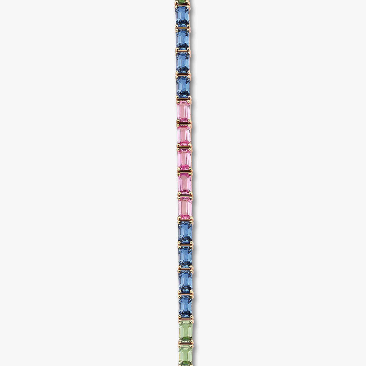 18 ayar rose altından tasarlanan Aurora bileklik, mavi, pembe ve sarı tonlardaki dikdörtgen kesim doğal safir taşlarıyla göz alıcı bir renk armonisi sunuyor. Zarafeti ve renkli ışıltısıyla her stile sofistikebir dokunuş katıyor. Özel günlerde veya günlük kombinlerinizde fark yaratmak için ideal bir St. Jadwiga seçimi.
